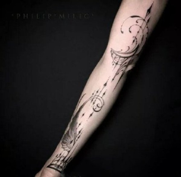 适合小臂上好看的黑灰纹身图案欣赏
