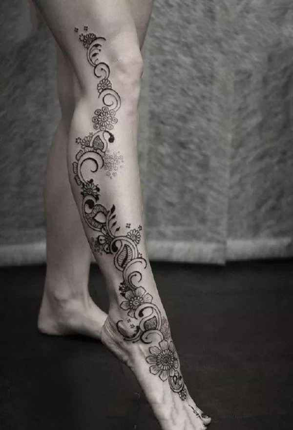 花腿纹身--一组大黑腿纹身图案作品欣赏
