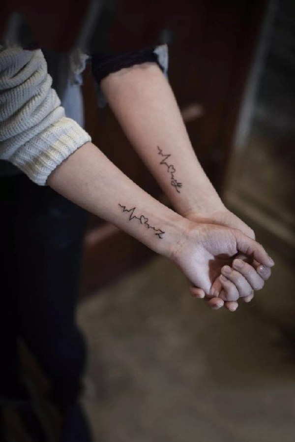 适合情侣小臂上的成对心电图纹身图案