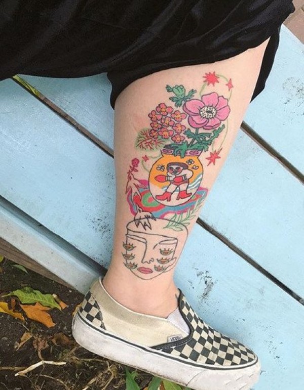 小腿艺妓纹身图案