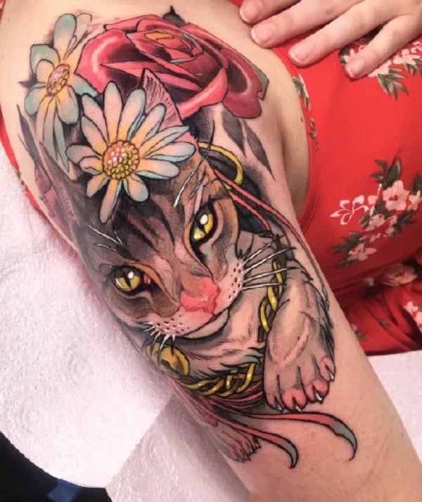 漫画纹身 日漫粉色风格的一组女郎纹身图片