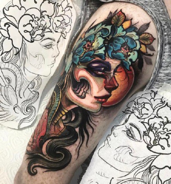 能面万媚纹身手稿_52张日式能剧面具纹身手稿图案素材欣赏