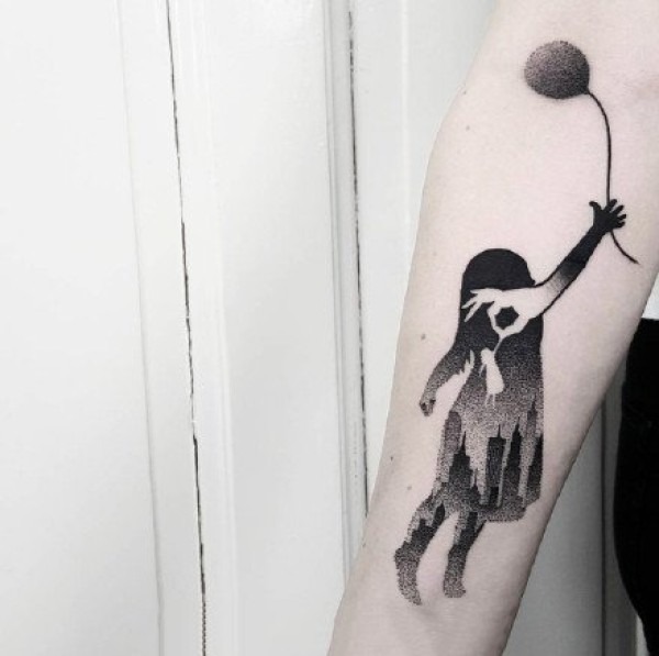 心脏纹身图案 女生手臂上黑灰纹身心脏纹身图案