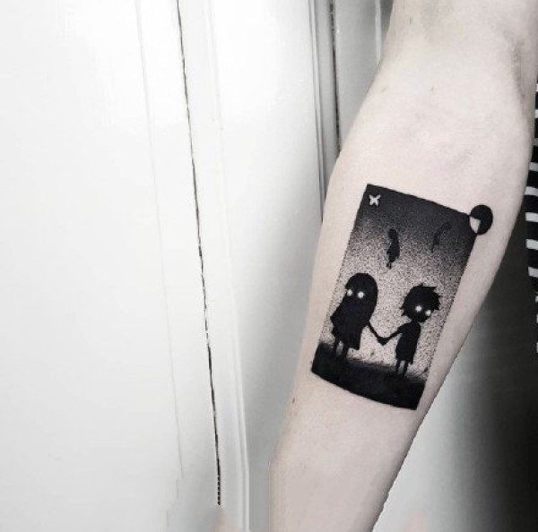 心脏纹身图案 女生手臂上黑灰纹身心脏纹身图案