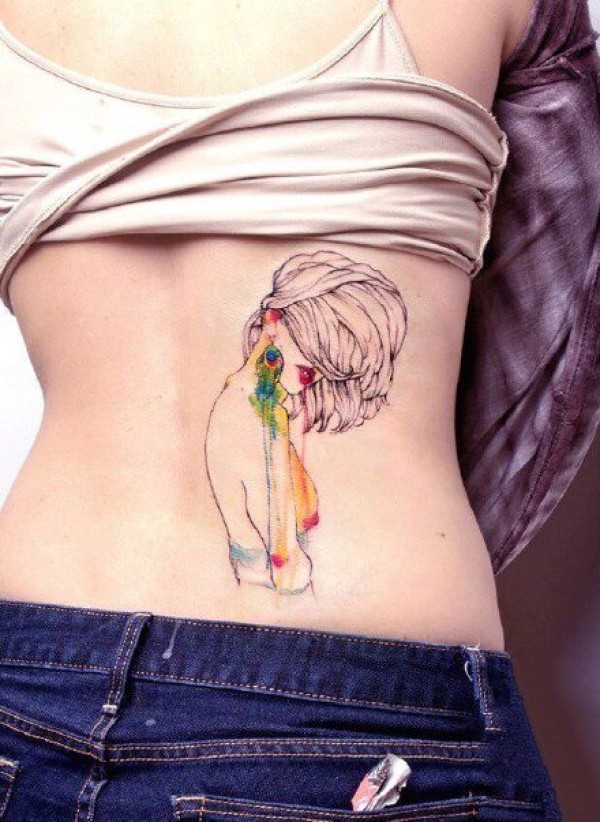 水彩色的一组女孩创意纹身图案欣赏