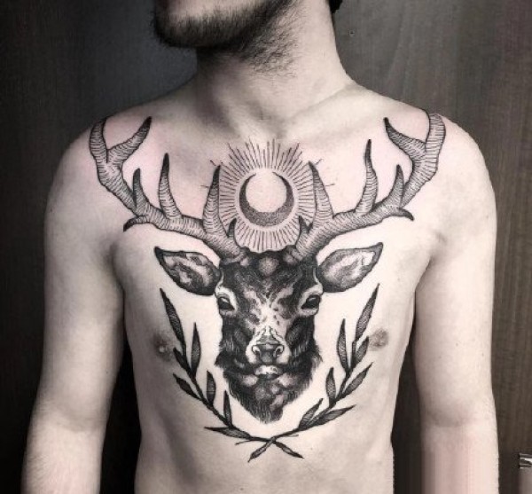 花胸纹身--一组男性霸气的大花胸纹身图案作品欣赏