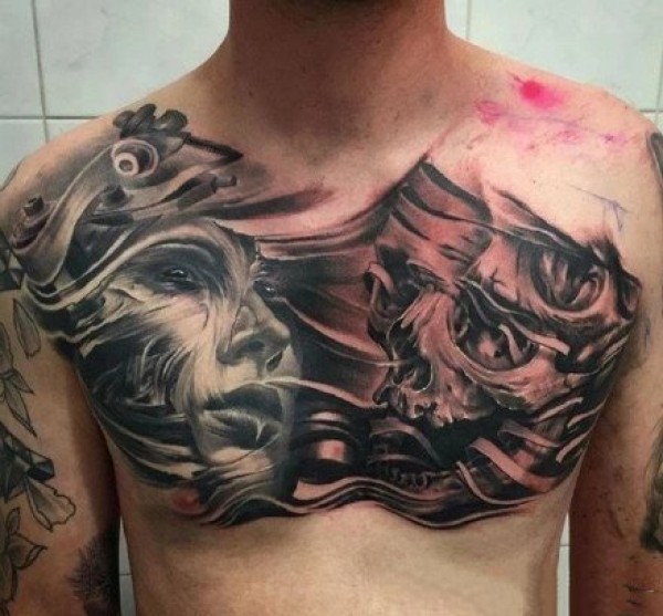 花胸纹身--一组男性霸气的大花胸纹身图案作品欣赏