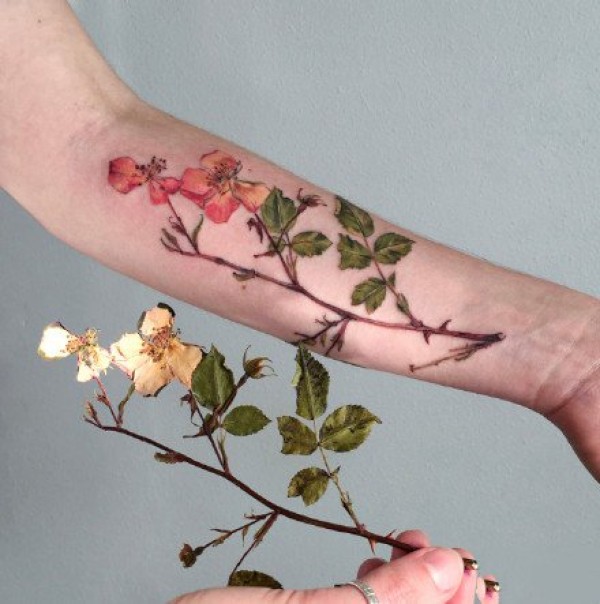 植物花卉纹身:27张鲜艳的彩色花卉植物纹身图案