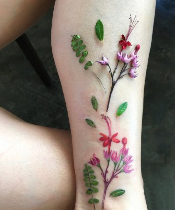 植物花卉纹身:27张鲜艳的彩色花卉植物纹身图案