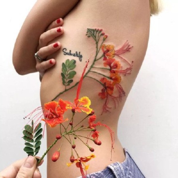 植物花卉纹身:27张鲜艳的彩色花卉植物纹身图案