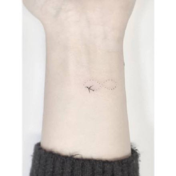 小飞机纹身 极简旅行主题的地图和小飞机纹身图案