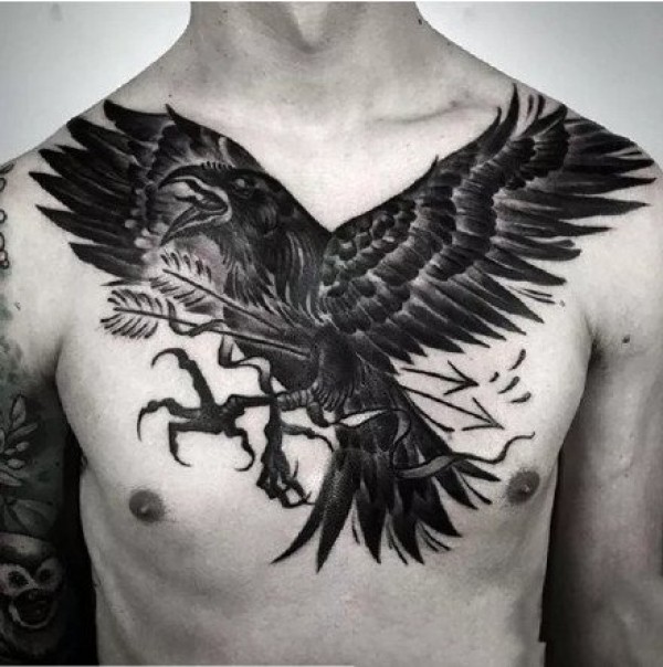 乌鸦主题的9张深黑色乌鸦纹身图案