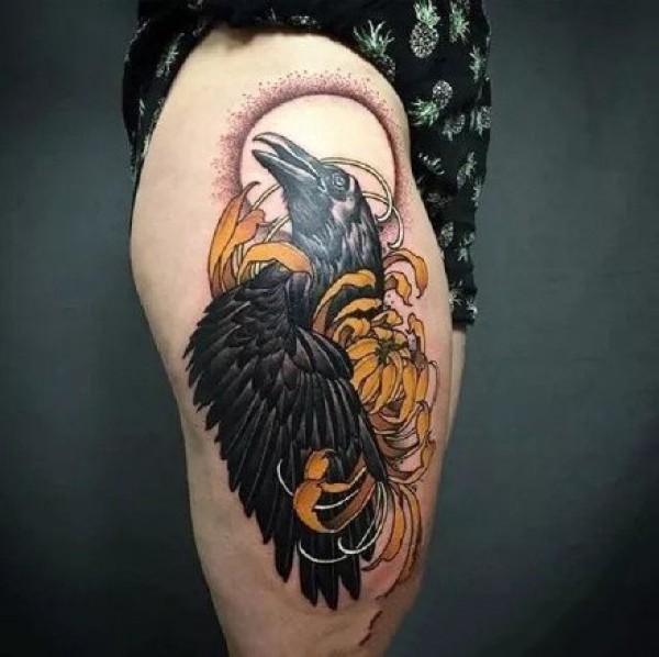 乌鸦主题的9张深黑色乌鸦纹身图案