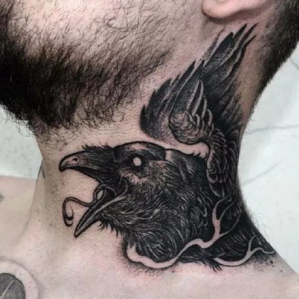 乌鸦主题的9张深黑色乌鸦纹身图案