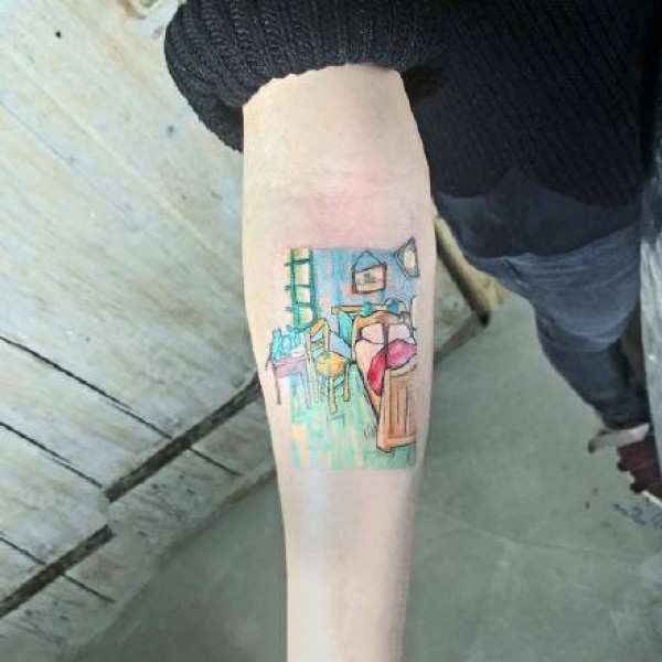 小清新涂鸦纹身:27张简约清新的小彩色涂鸦纹身图案