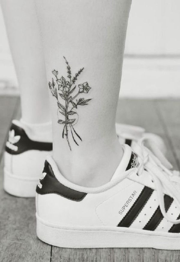 女生脚踝上的小清新花朵纹身图片