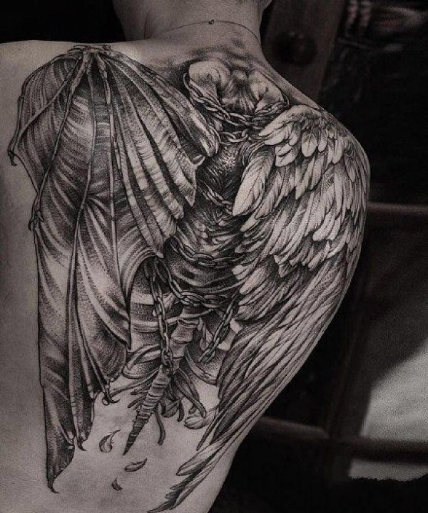 霸气翅膀:适合男性的一组霸气翅膀纹身图案9张