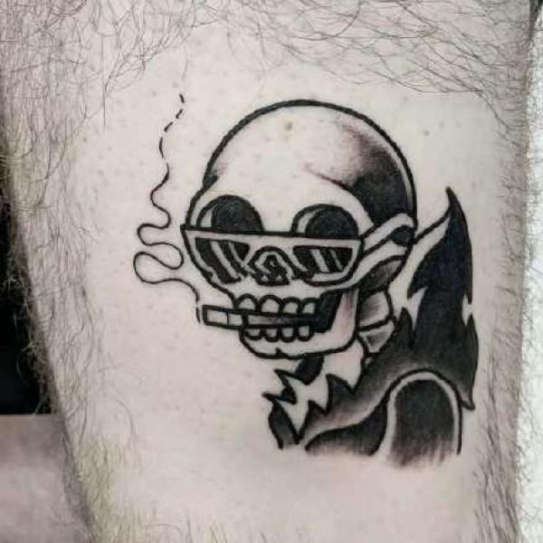 黑灰oldschool风格的一组骷髅等小纹身图片