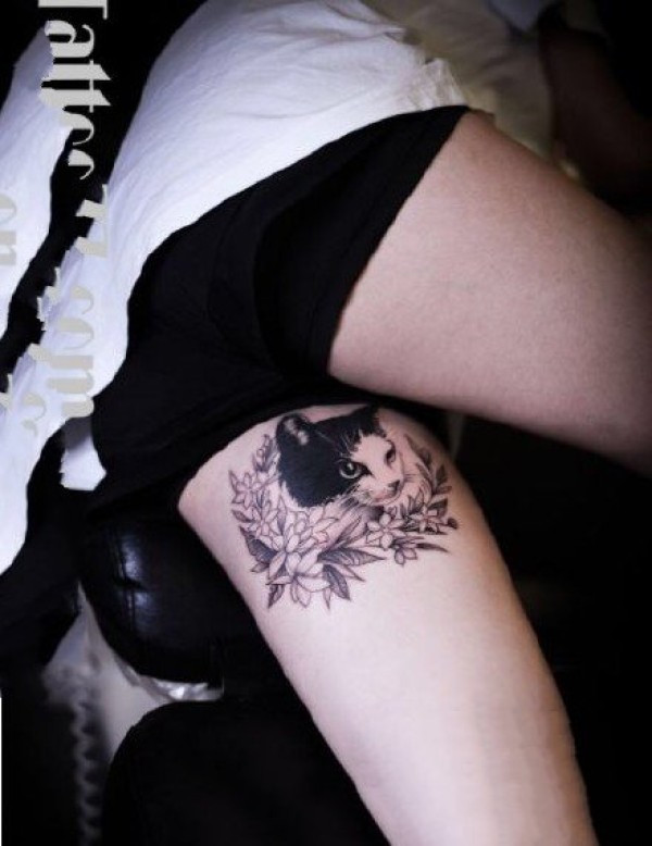 一组适合爱猫人士的宠物猫的纹身图案作品