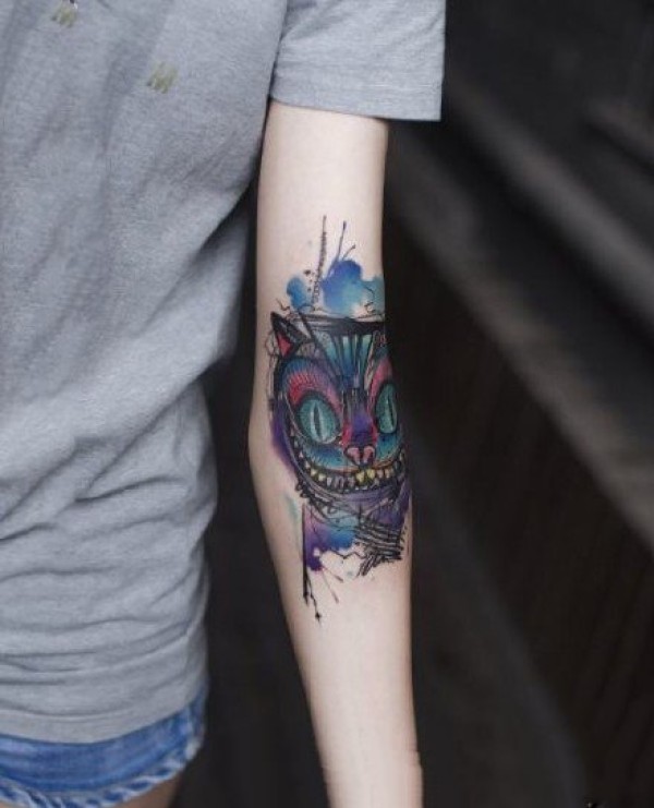 潮流纹身-色彩可爱的小猫小狗手臂纹身图片