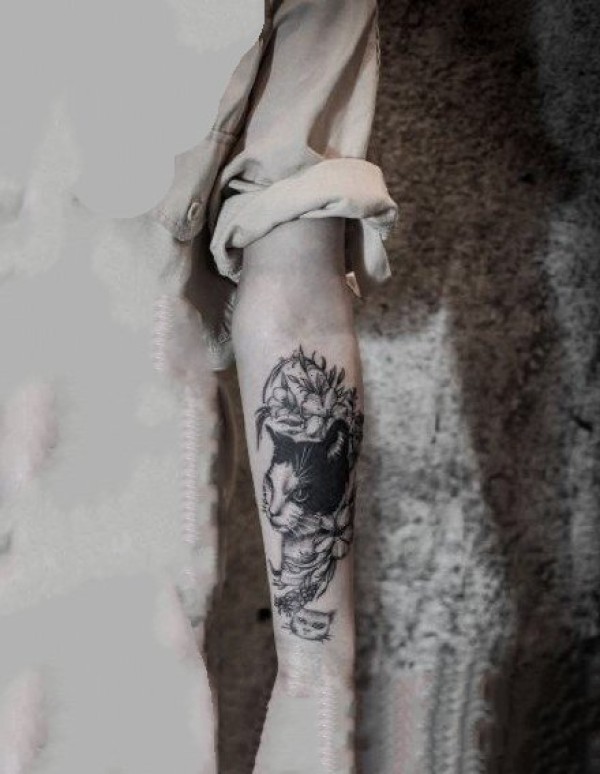 一组适合爱猫人士的宠物猫的纹身图案作品