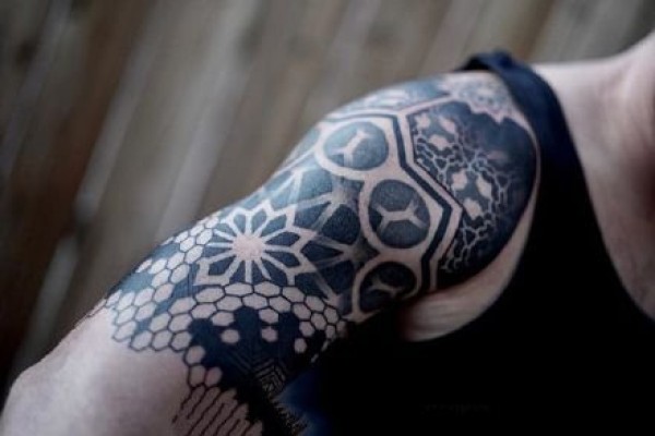 25款男性黑色手臂线条纹身点刺技巧半甲纹身图案