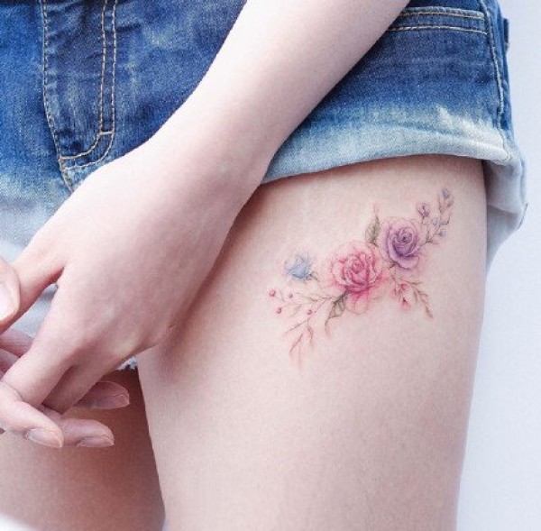 女生小清新:女孩子身上的唯美小彩色清新纹身图片