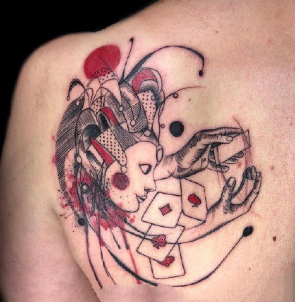 个性扑克:很有个性的一组彩色扑克纹身图片