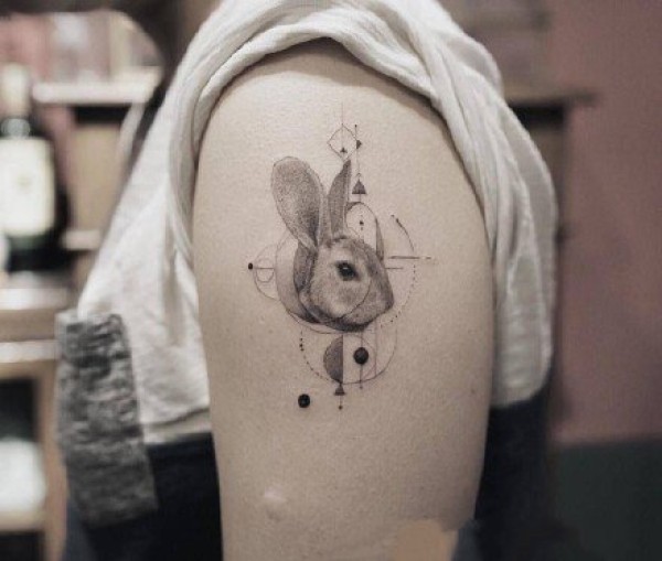 小兔子纹身:黑灰色的9张小兔子纹身作品9张