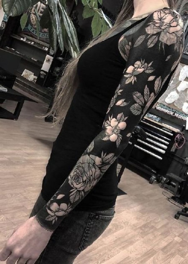 欧美花臂纹身_22张霸气黑灰欧美大黑花臂纹身图案作品图片