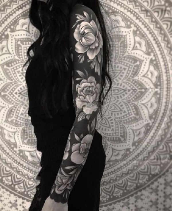 欧美花臂纹身_22张霸气黑灰欧美大黑花臂纹身图案作品图片