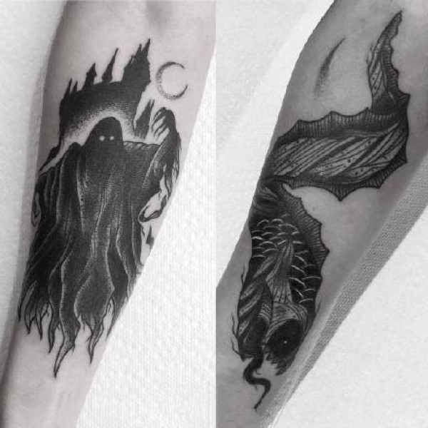暗黑纹身图案--16张暗黑风格的手臂和腿部的纹身图案