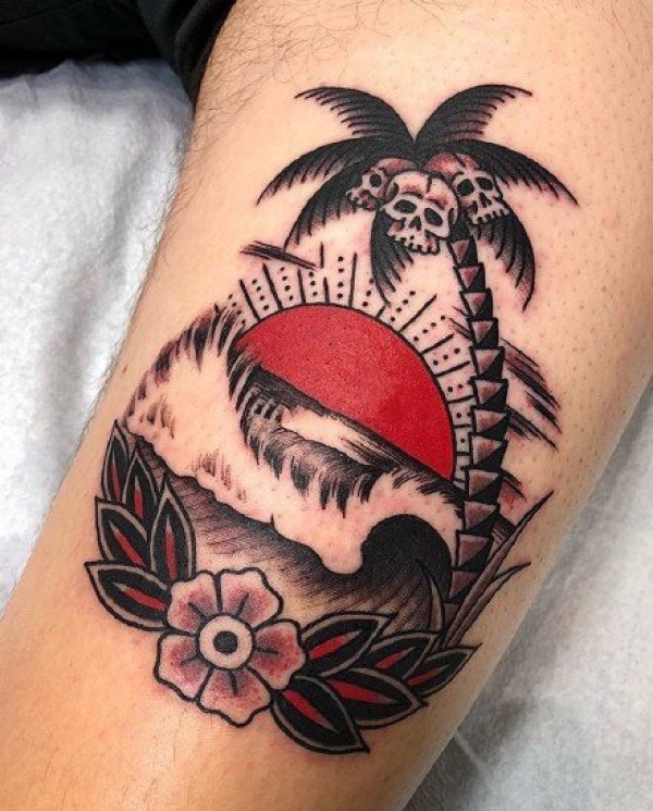 oldschool风格的拼接花臂纹身作品欣赏