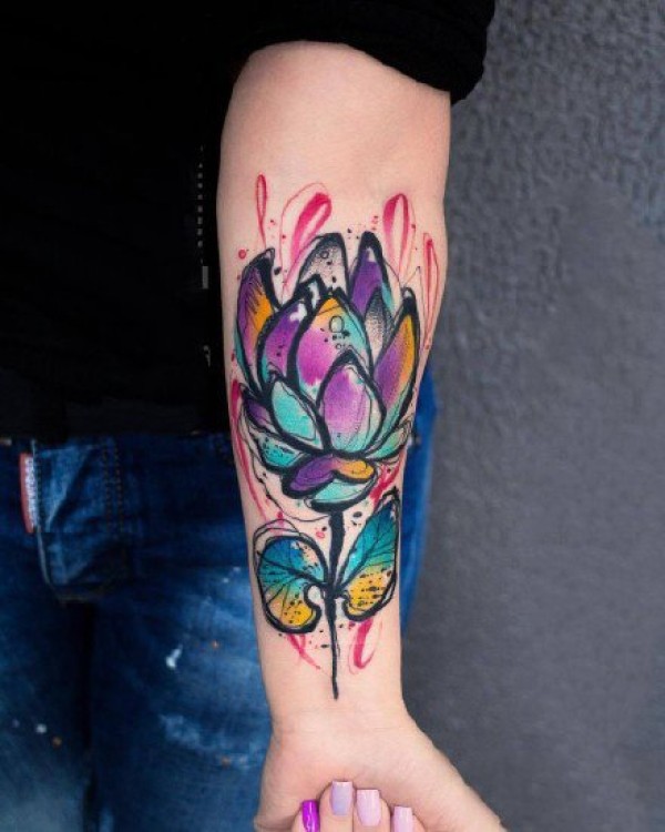 小手臂上很个性一组水彩纹身图片