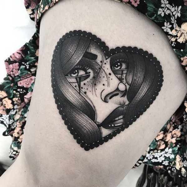 带女郎肖像元素的一组暗黑女郎纹身作品