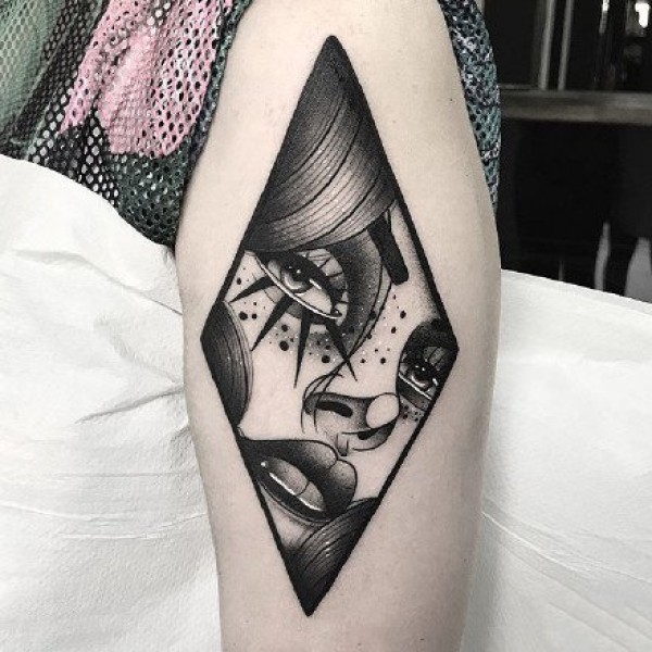 带女郎肖像元素的一组暗黑女郎纹身作品
