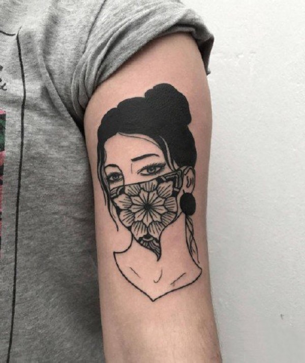 黑灰女郎+点刺风格的一组女郎黑灰纹身图案