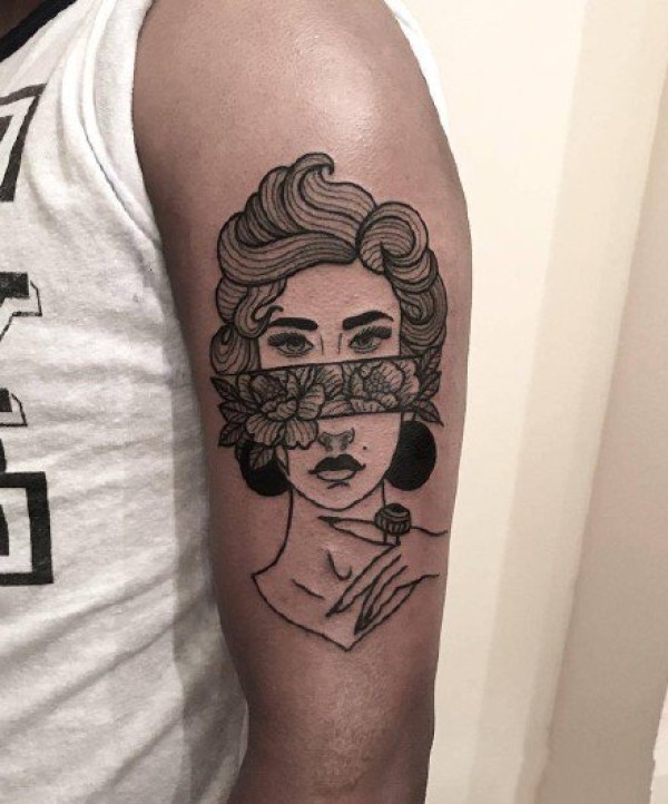 黑灰女郎+点刺风格的一组女郎黑灰纹身图案