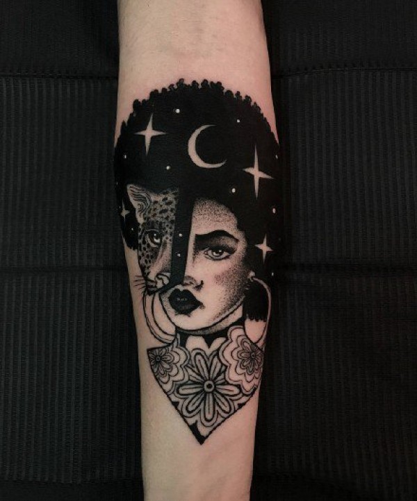 黑灰女郎+点刺风格的一组女郎黑灰纹身图案