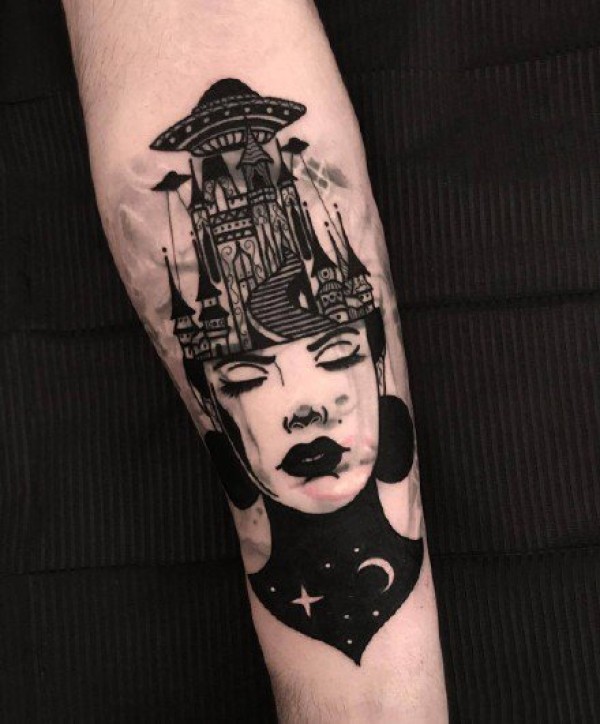 黑灰女郎+点刺风格的一组女郎黑灰纹身图案