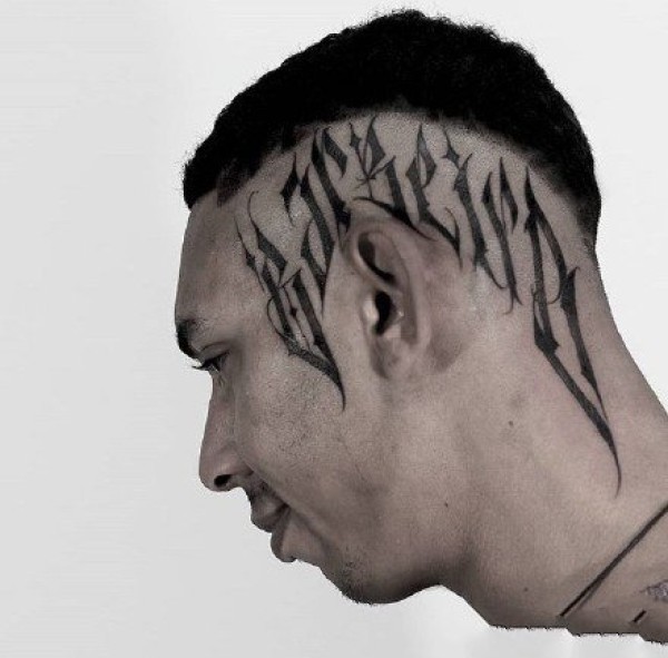 面部个性纹身花体英文字脸部传统风格纹身图案