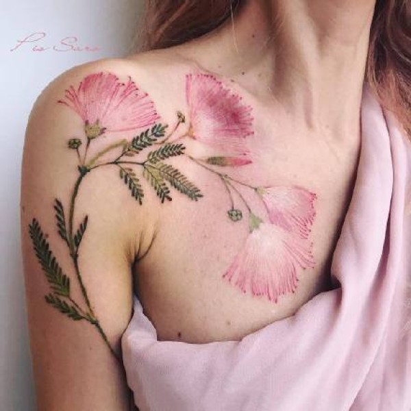 女性专属的一组水彩色花卉植物纹身图案