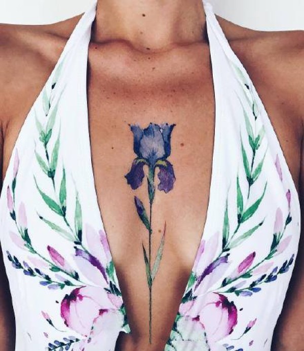 性感花朵纹身--女性大腿侧部性感的花朵纹身