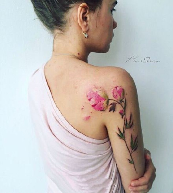 女性专属的一组水彩色花卉植物纹身图案