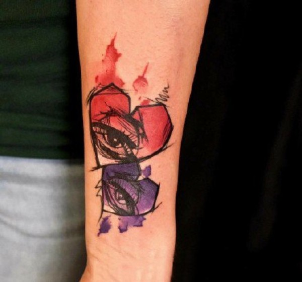 胳膊原创水彩心上钥匙纹身图案