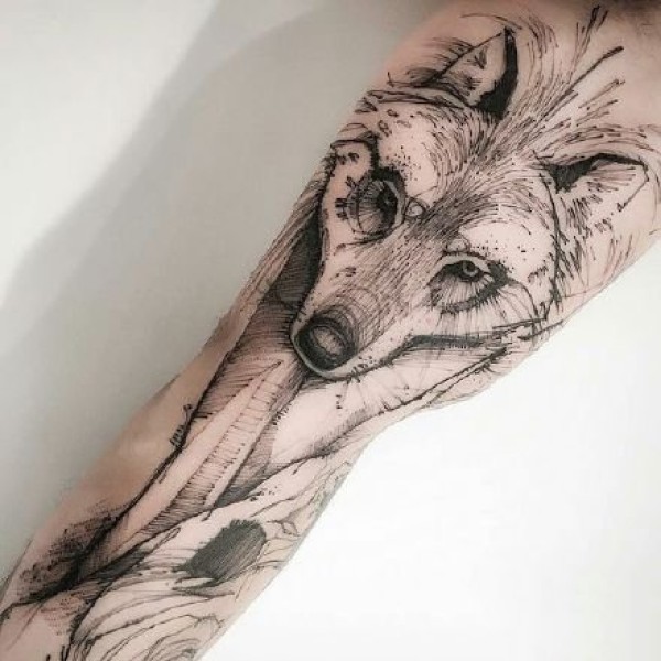一组16张狐狸纹身手稿素材图案