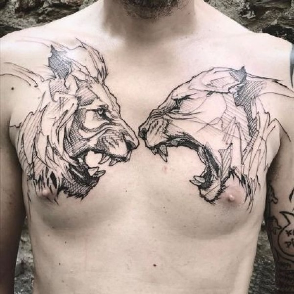 素描纹身:一组黑灰水墨风格的素描动物纹身图案