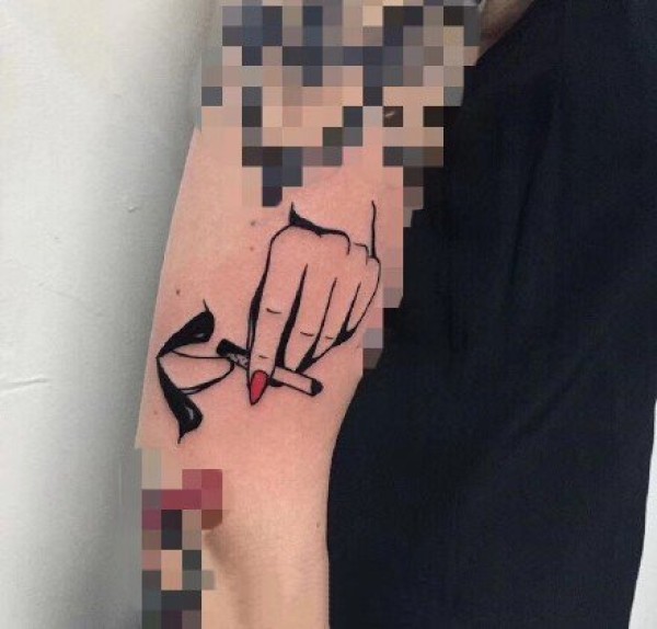 心脏纹身图案 女生手臂上黑灰纹身心脏纹身图案