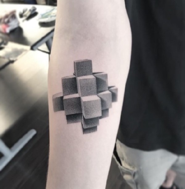 由几何体立体构成的3d视觉纹身图案欣赏