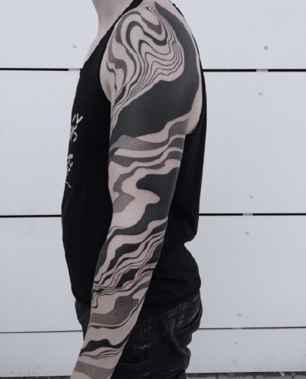 25款男性黑色手臂线条纹身点刺技巧半甲纹身图案